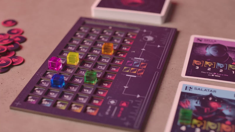 A standalone push-your-luck dice game for 2-5 players featuring familiar faces and themes from the Moonrakers universe. Attempt contracts, hire crew, and push-your-luck in an addictive game of strategy and chance. Moonrollers brings Moonraker's feelings of player interaction and calculated decision-making to a lighter experience that's the perfect appetizer for serious gamers and the star of the show for casual groups.
