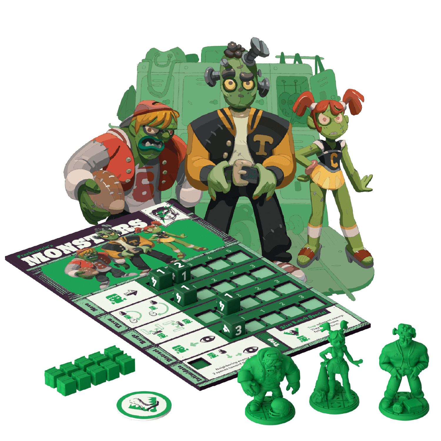 Bolt, Bash, and Beast are an all-star, bad-dream scream- team. This Varsity crew of cadavers reeks of body odor, rigor mortis, and deodorant spray. Hall monitors beware — these monsters do not scare, and these three sporty spooks are dying for something to do!