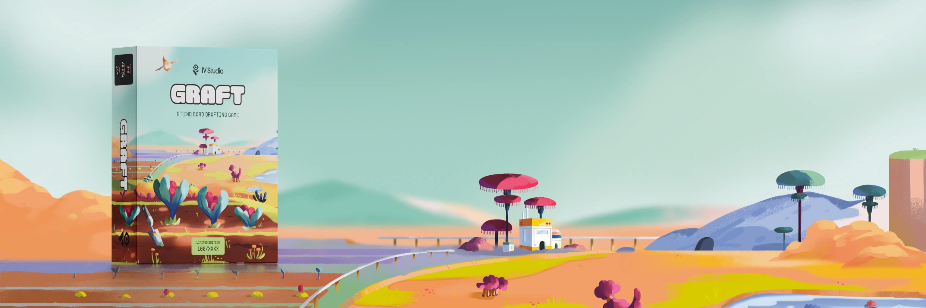 Graft is a card drafting, set collection game for 3-5 players where you will fill your cargo manifest with high-value goods and send them back to Zenith Corporation. On each turn, you will simultaneously draft 1 card to place into your cargo manifest. Each card is a valuable good that has a specific scoring condition and restrictions on how they can be packed in your manifest. Keep drafting cards to gain more points but be careful, because if you don’t pack your cargo properly, Zenith will reject your manifest, forcing you to start over. At any time, a player may send their cargo to Zenith by playing their Ship Cargo card. This signals the end of their current collection and locks in those cards for scoring. Chain combos, avoid busting, and claim badges to score the most points with Zenith to become their best pioneer.