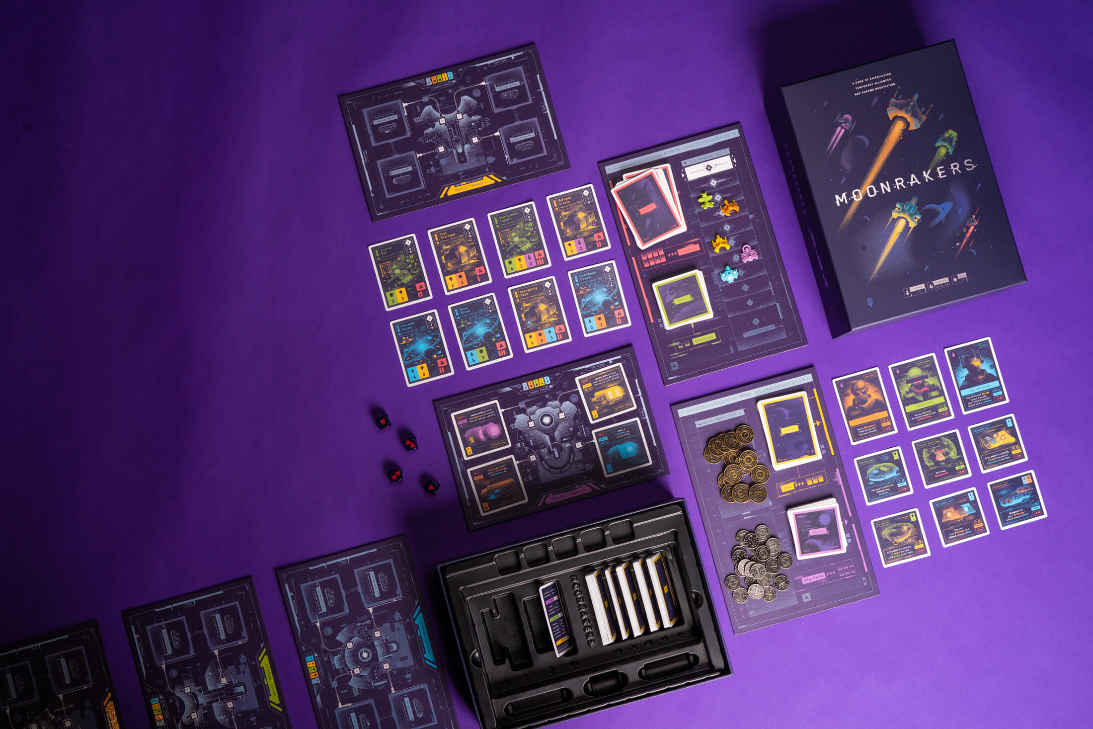 A new take on the timeless genre of deck-building, Moonrakers adds negotiation and temporary alliances that keep the entire table constantly engaged and creates moments that turn into unforgettable memories.