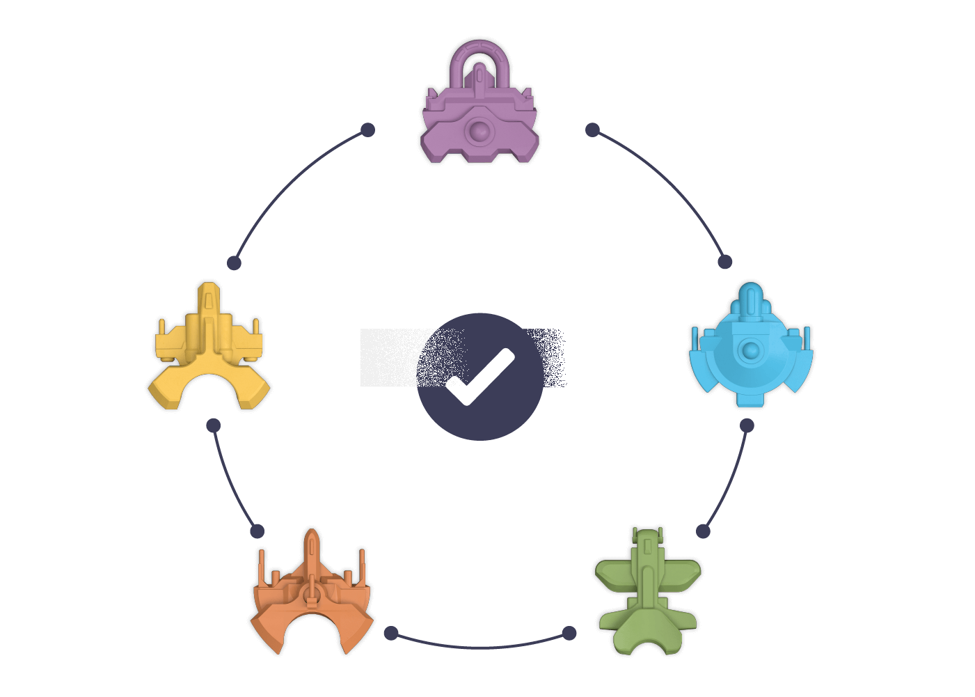 57 unique ship parts & crew with zero repeated abilities means every ship and deck is different, with 184+ billion possible combinations.