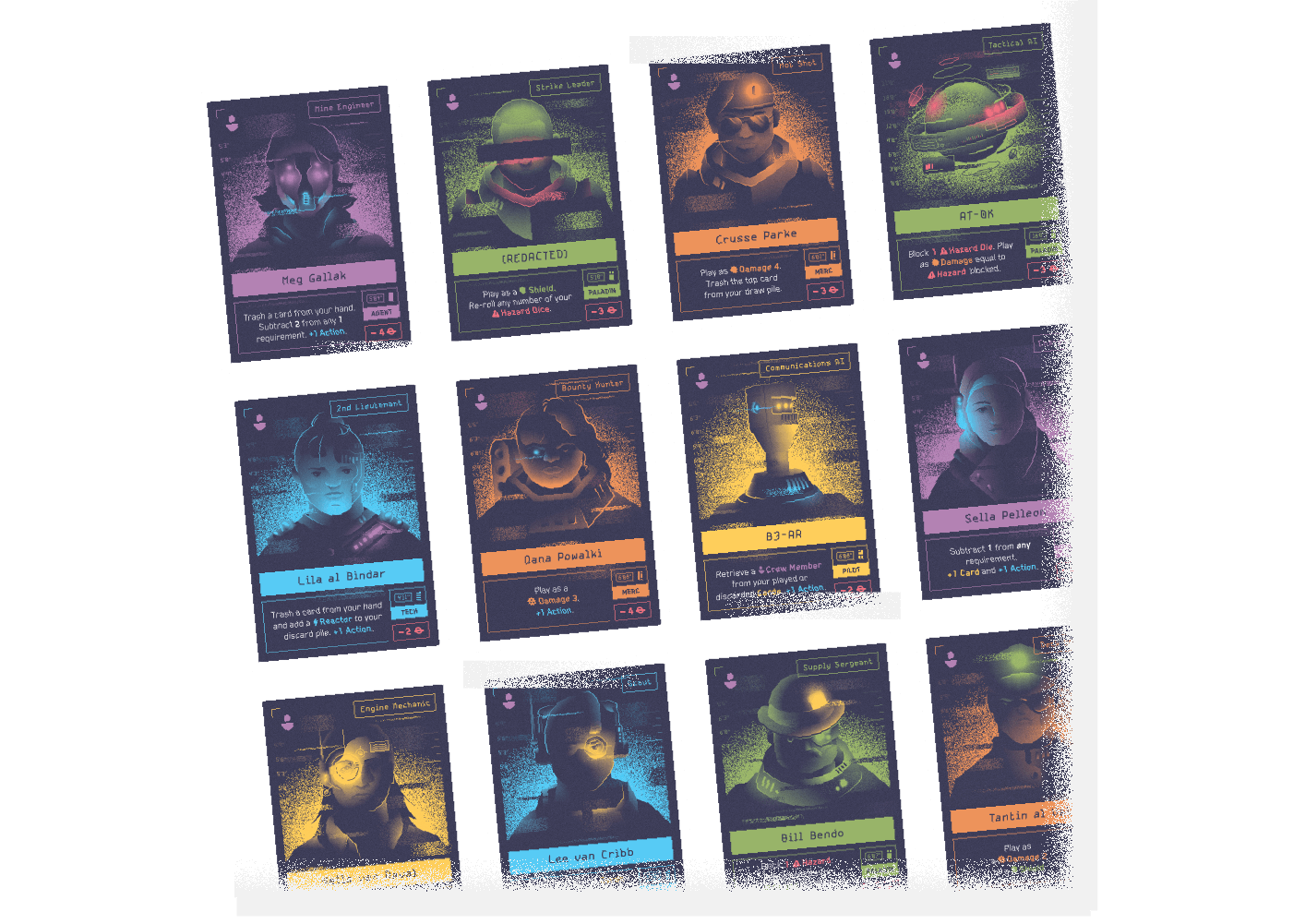 Ship parts give you permanent abilities and add basic action cards to your deck. Crew are added directly to your deck and have powerful special abilities when played.